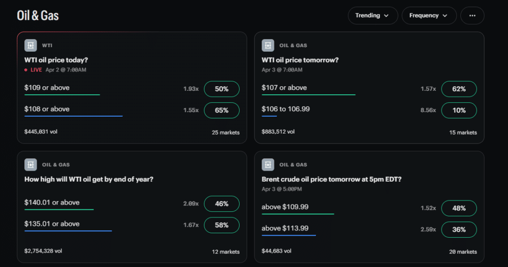 Öljyn hintaan liittyvät kohteet keräävät tällä hetkellä suurta vaihtoa Kalshissa.