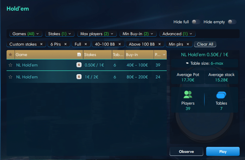 Aikaisemmin pelaajat pystyivät näkemään listan käynnissä olevista pöydistä ja valitsemaan paikkansa vapaasti, mutta nyt tarjolla on niin sanottu ”blind lobby”.
